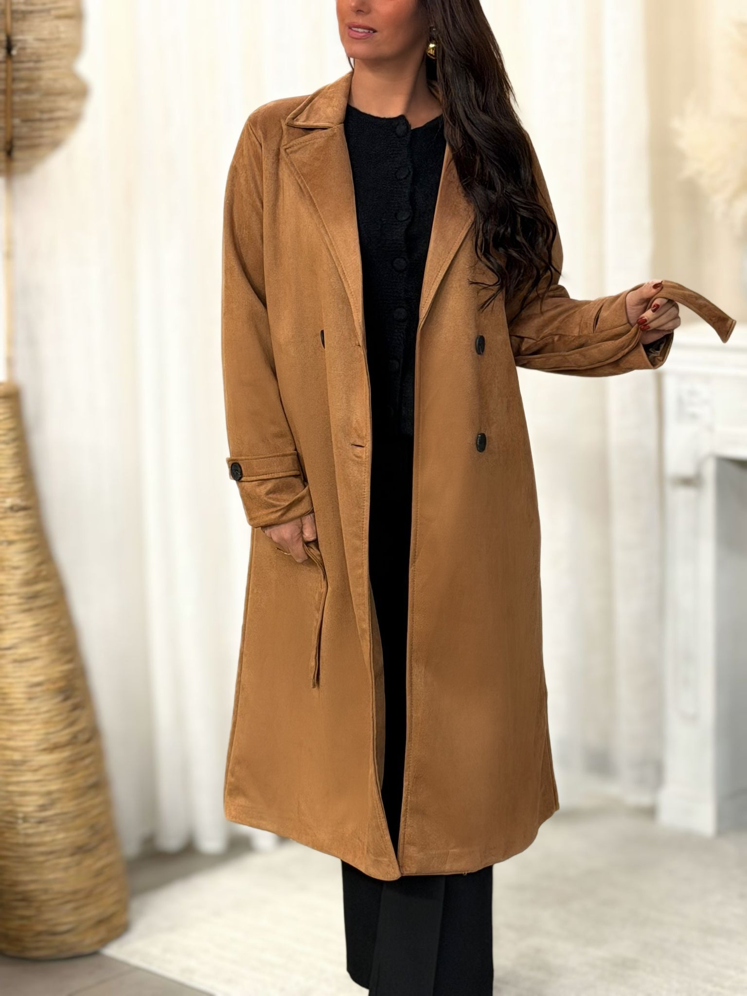 Caractéristiques : fermeture par boutons, ceinture à nouer