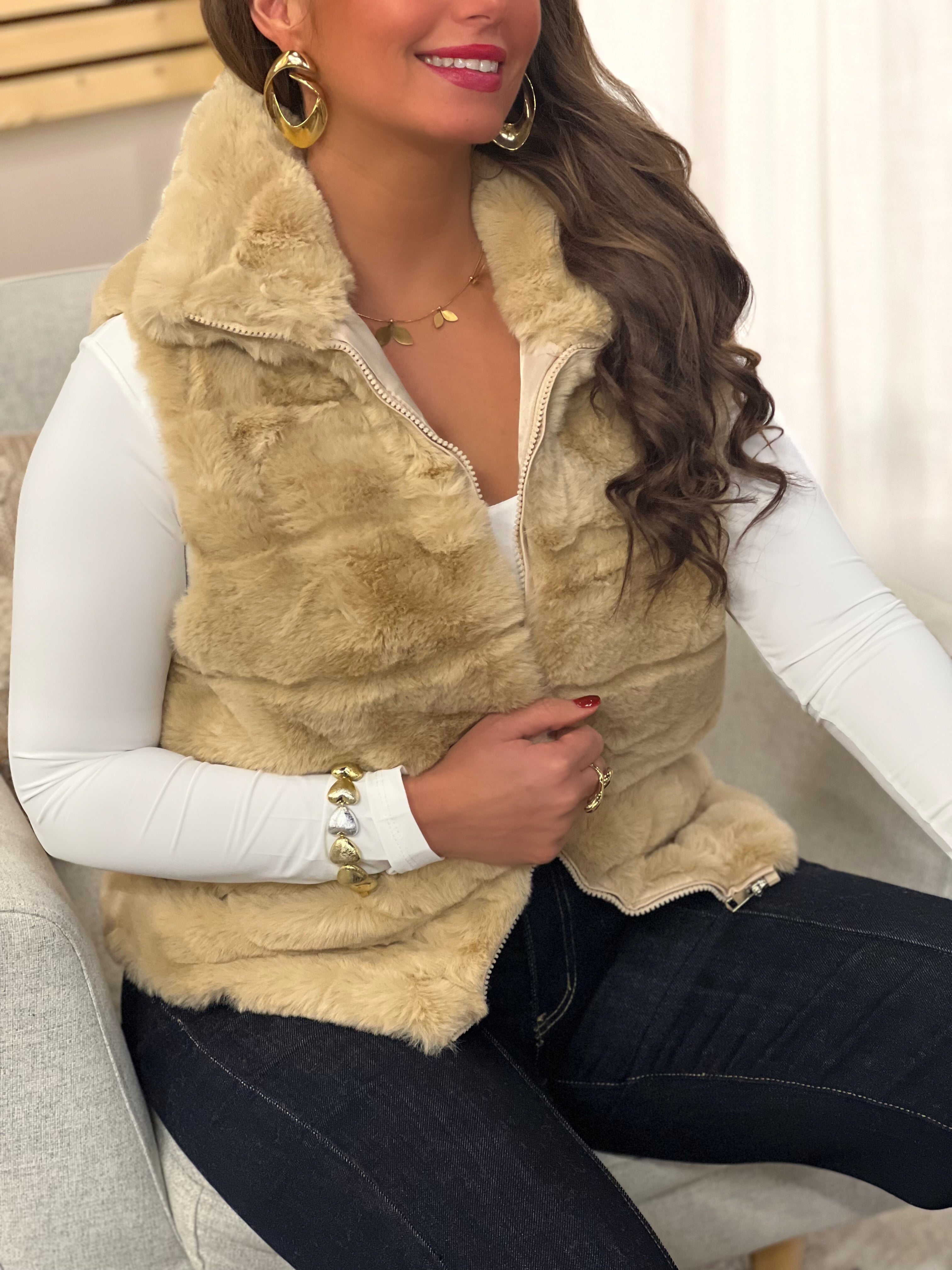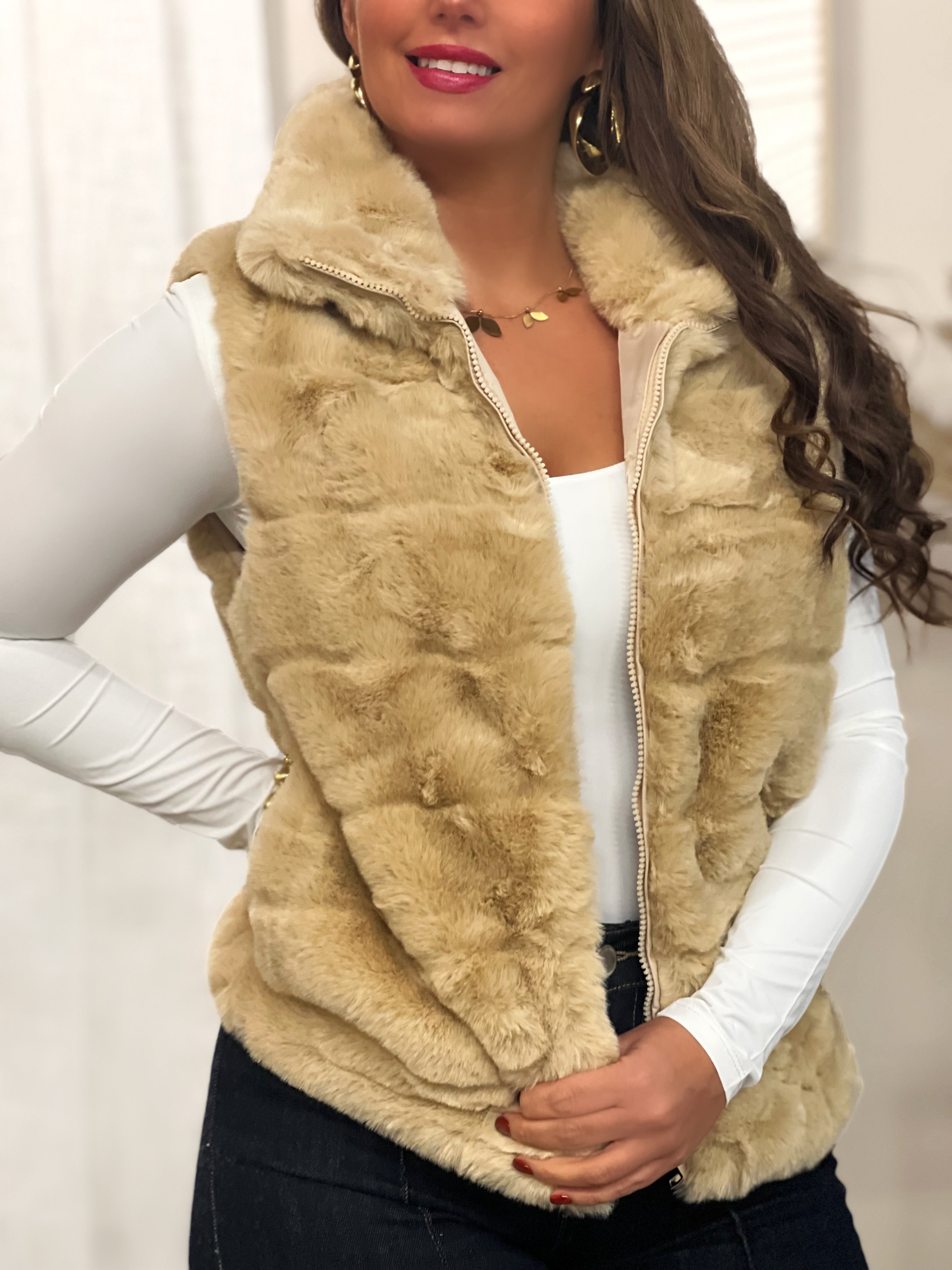 Doudoune sans manches à fourrure MIYA - BEIGE