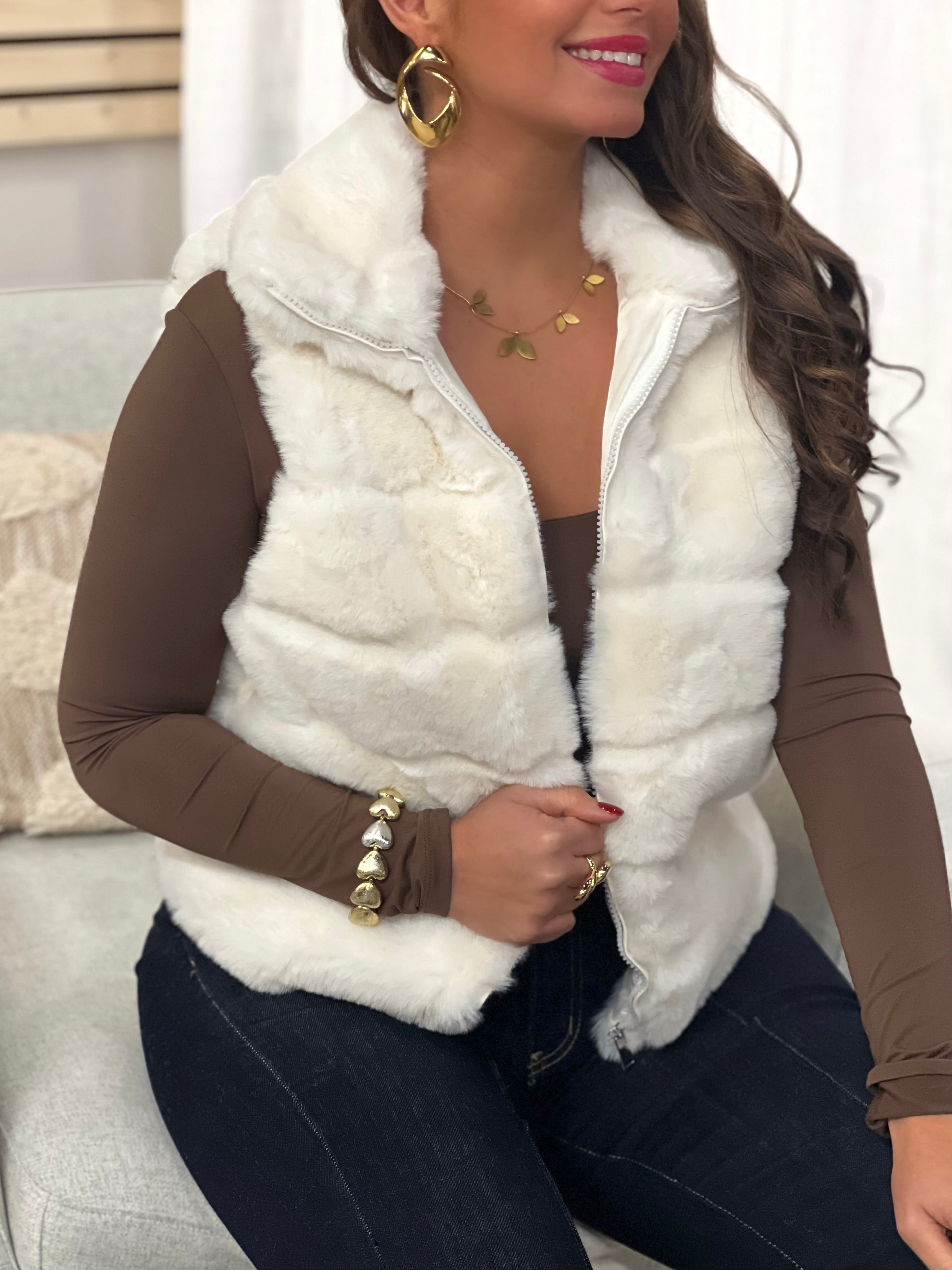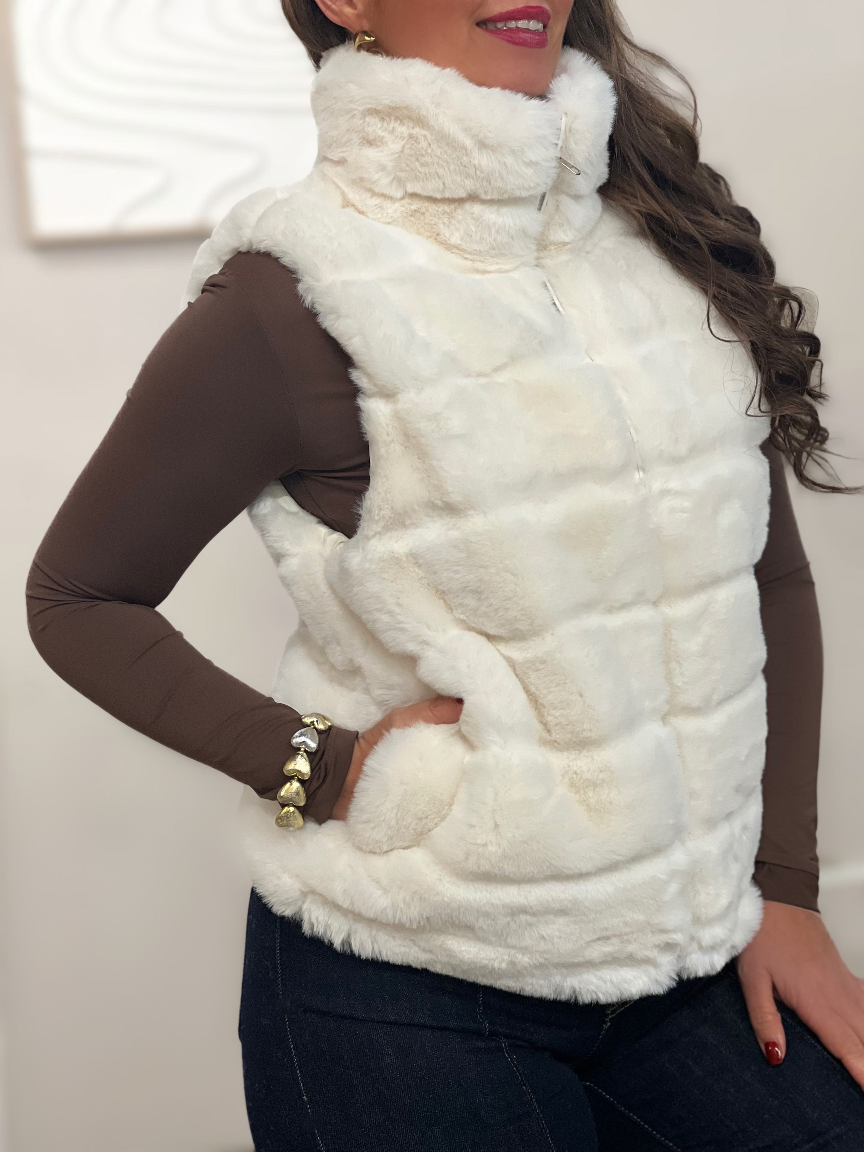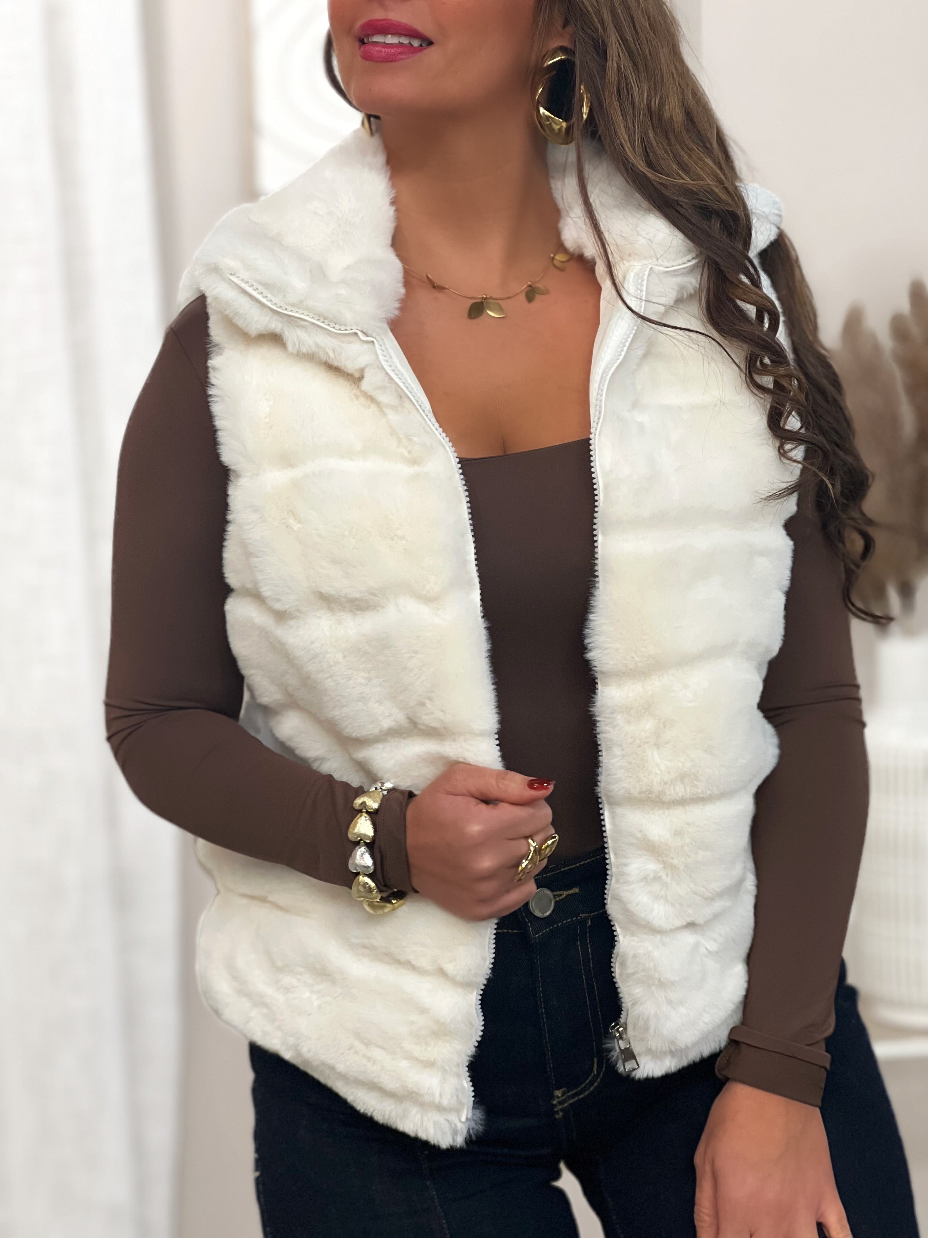 Doudoune sans manches à fourrure MIYA - ÉCRU