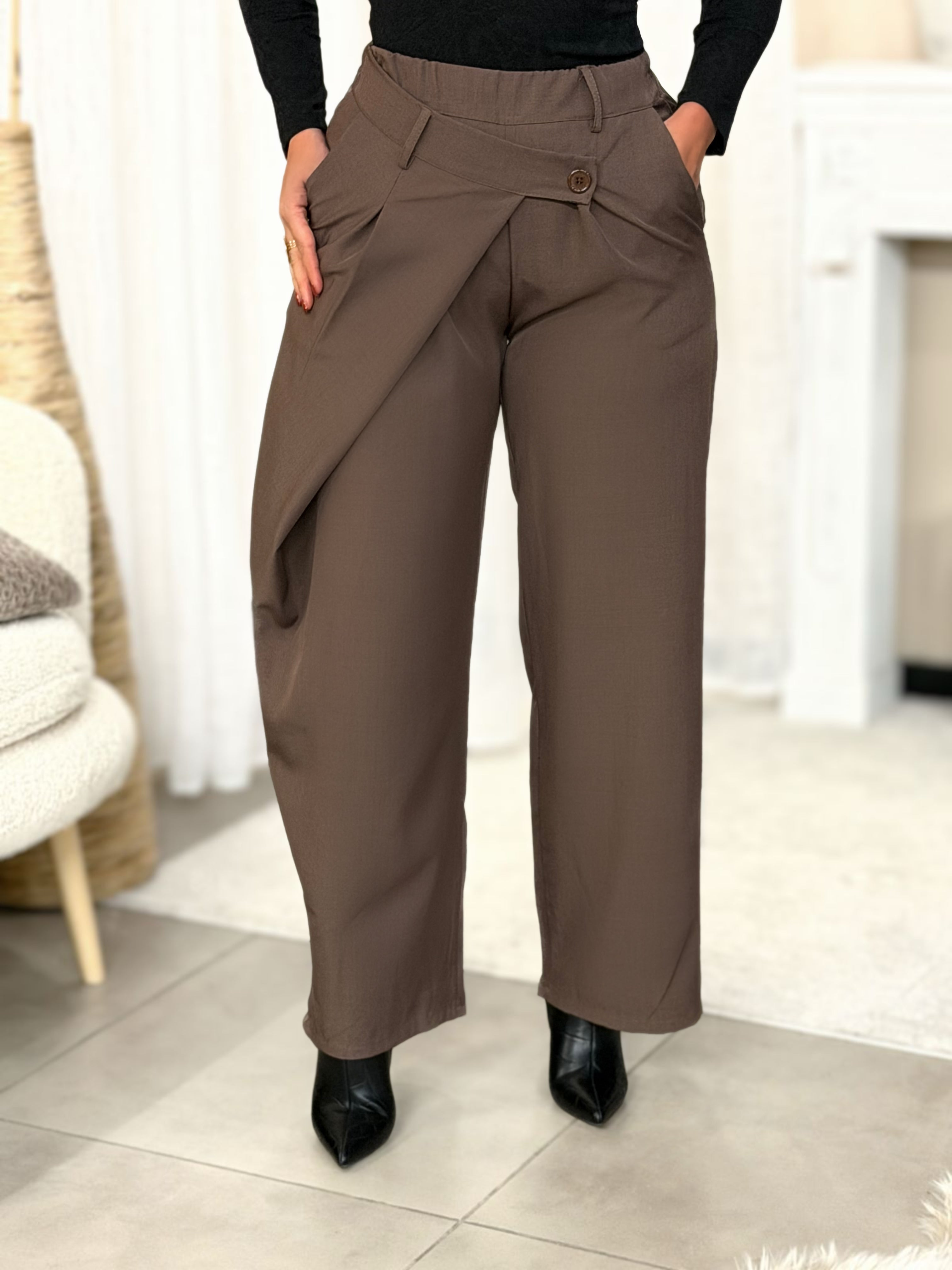 Caractéristiques : fermeture par bouton, élastique à la taille à l’arrière, poches fonctionnelles