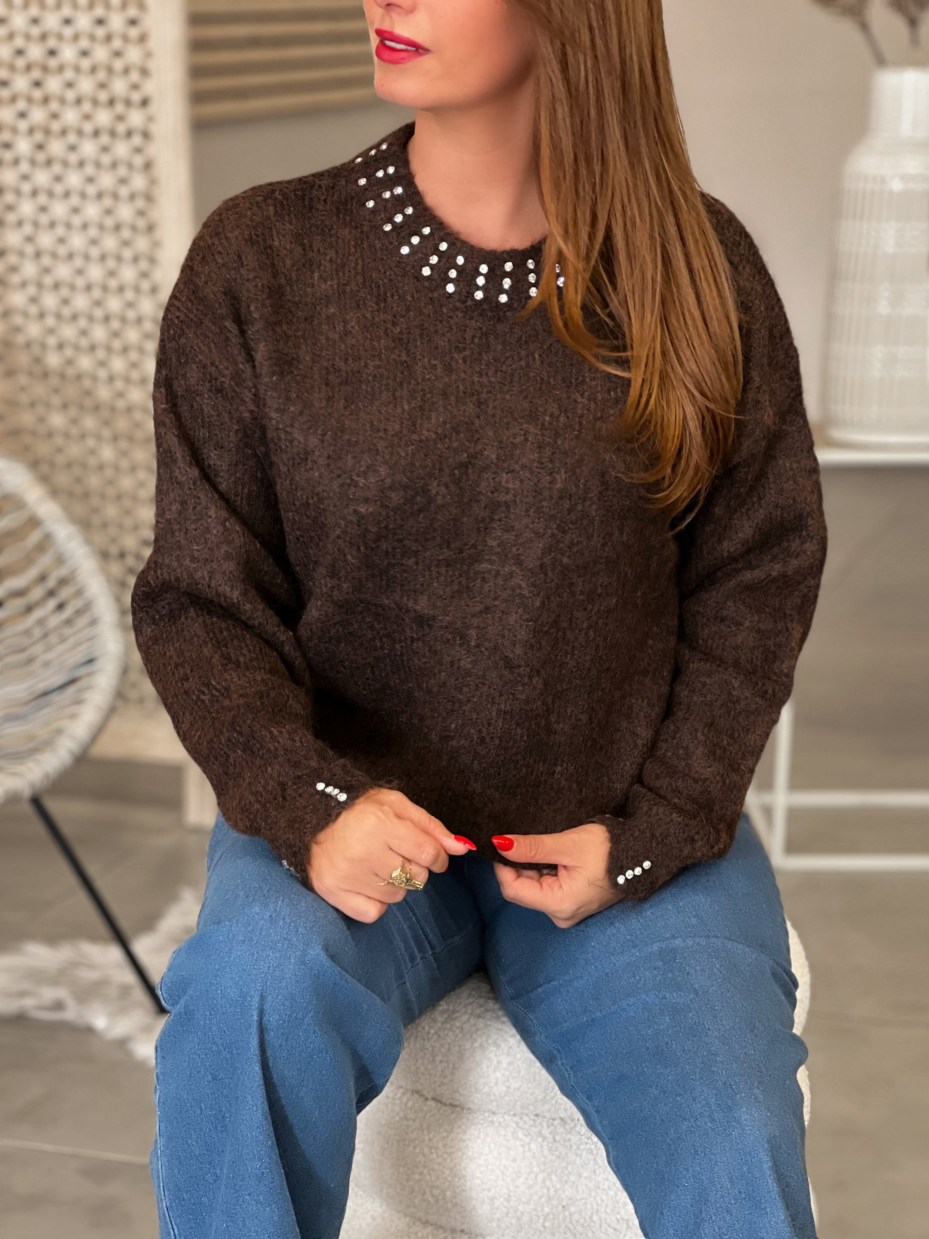 Caractéristiques : col rond, strass décoratifs