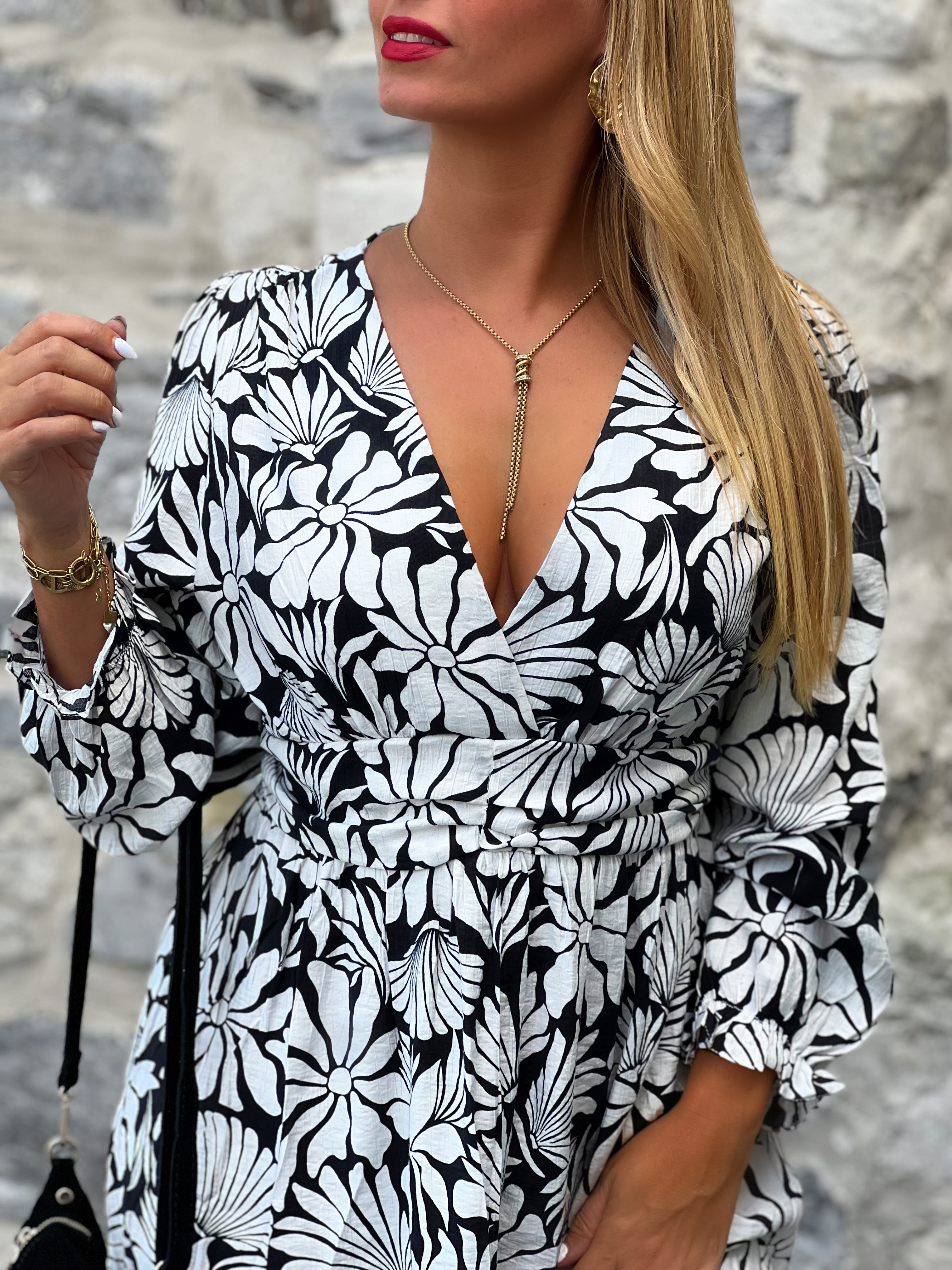 Caractéristiques : décolleté en v, élastique au niveau des poignets